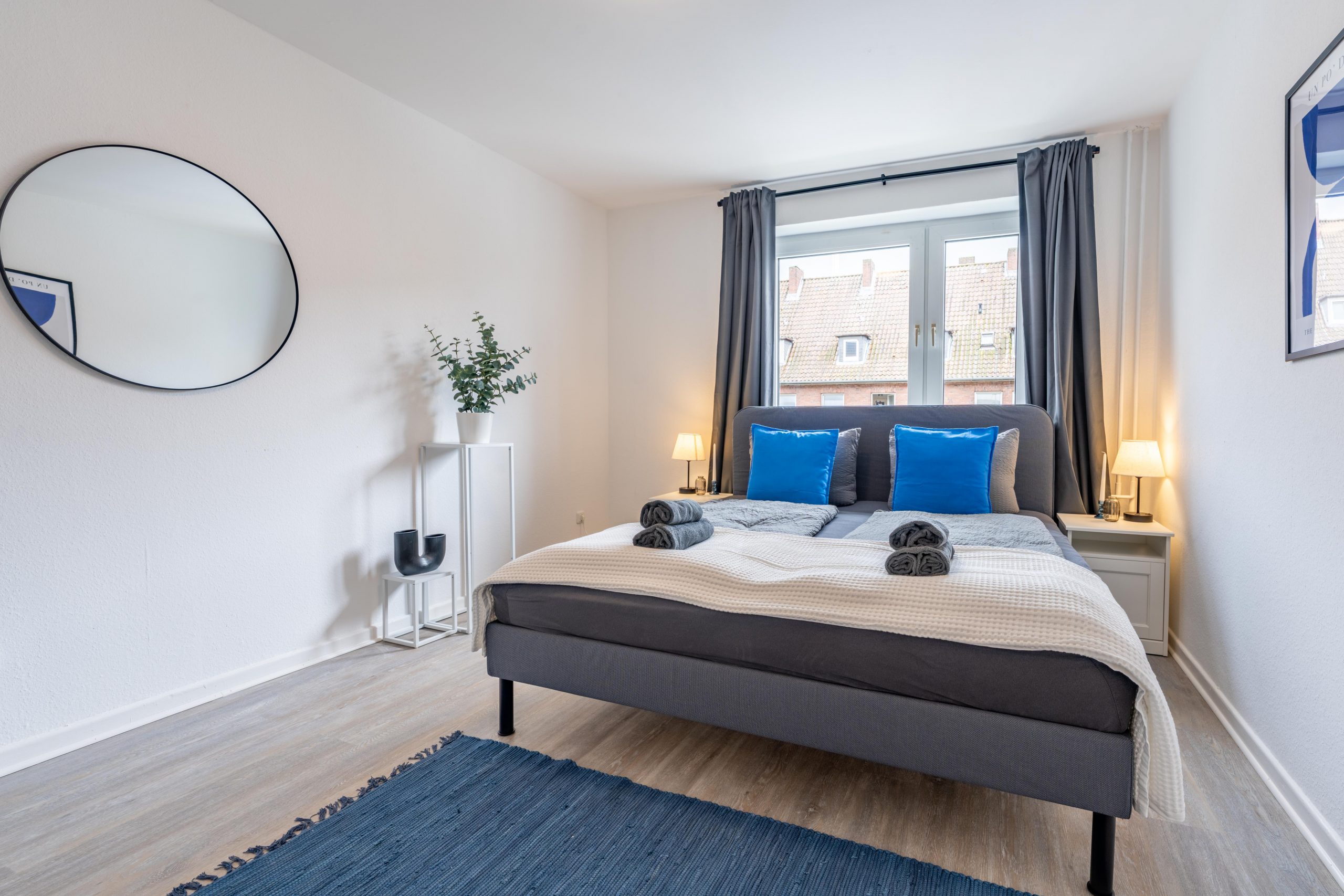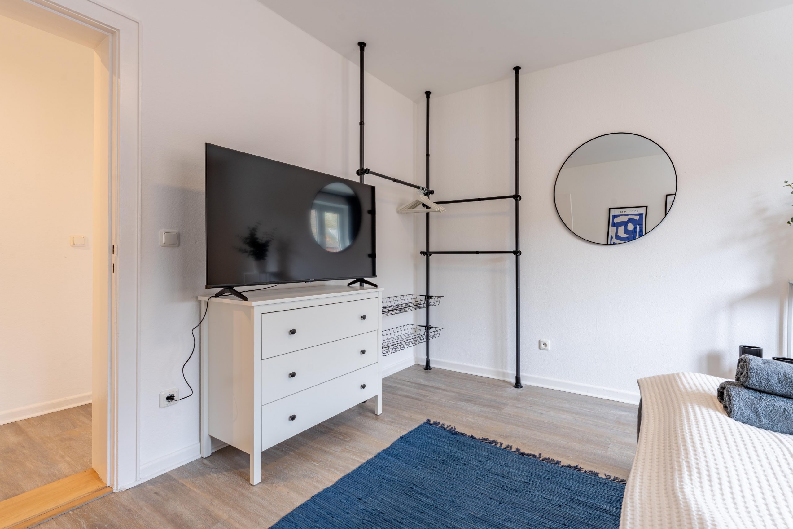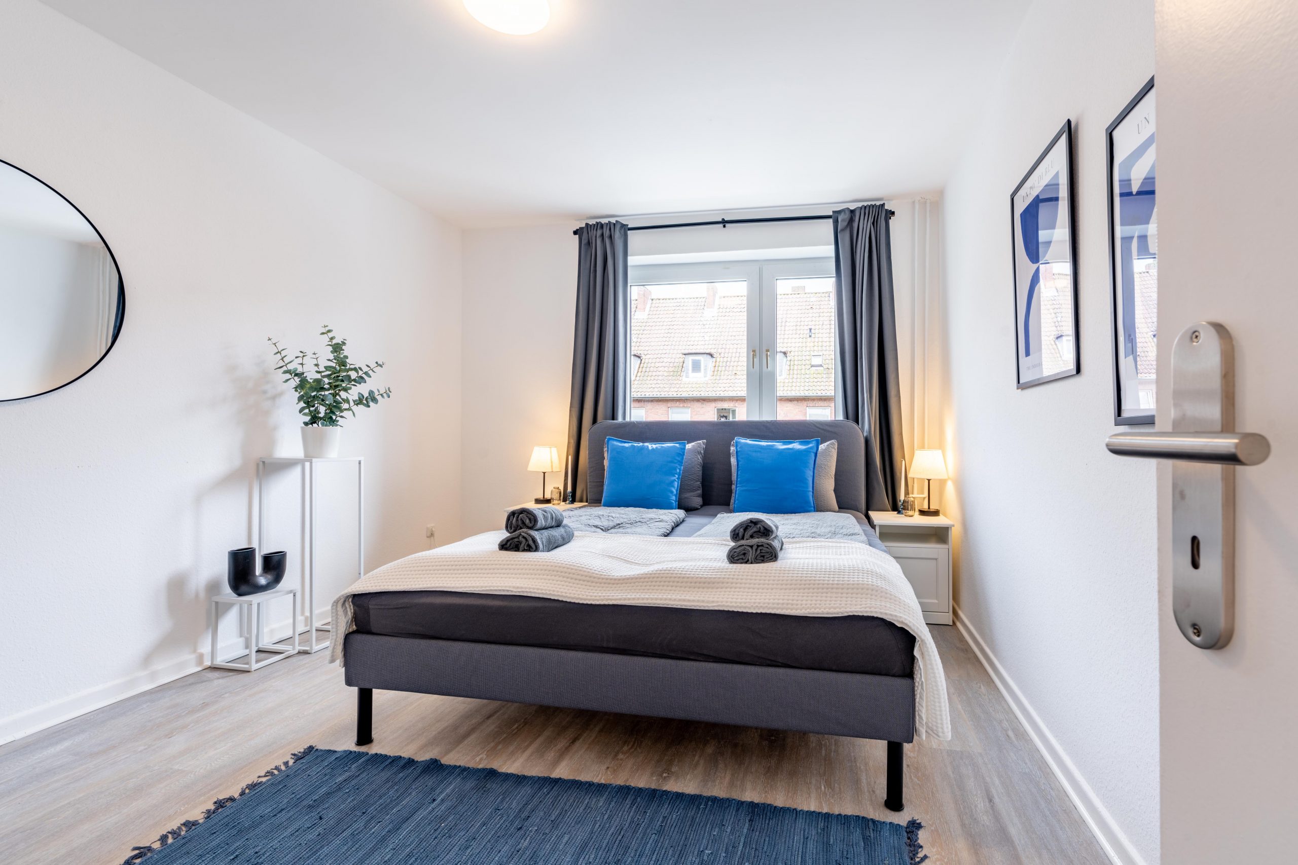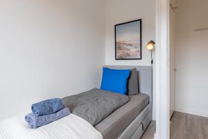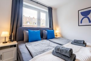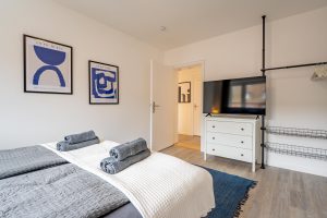 Diese helle und modern eingerichtete Unterkunft bietet Platz für bis zu 5 Gäste und ist ideal für Geschäfts- und Freizeitreisende geeignet. Das großzügige Doppelbett, ein Einzelbett sowie ein komfortables Schlafsofa sorgen für erholsamen Schlaf – auch bei längeren Aufenthalten.