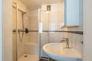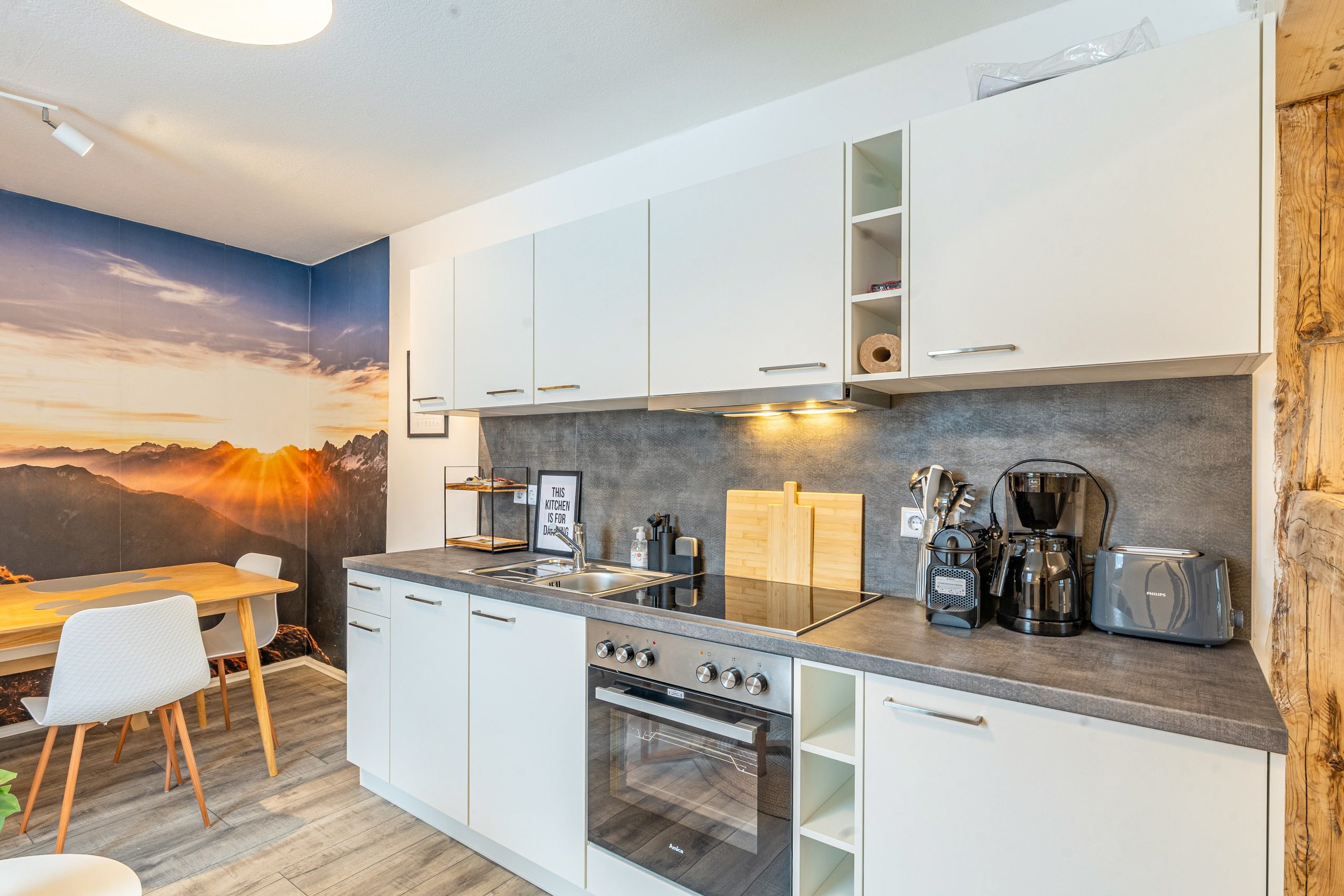 Der einladende Wohn- und Essbereich mit TV lädt zu gemeinsamen Stunden nach erlebnisreichen Tagen ein. Ein separates Gäste-WC sowie ein Badezimmer mit WC runden den Komfort ab.Zugang für Gäste