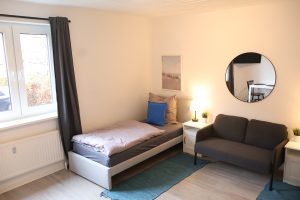 Check-in ist rund um die Uhr über eine Schlüsselbox möglich. Kostenfreie Parkplätze befinden sich an der Straße, Fahrräder können im Hinterhof abgestellt werden.
